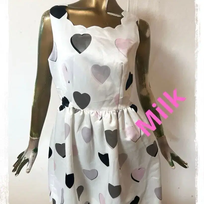 T19721 Milk 하트 무늬 올 패턴 슬리브리스 원피스