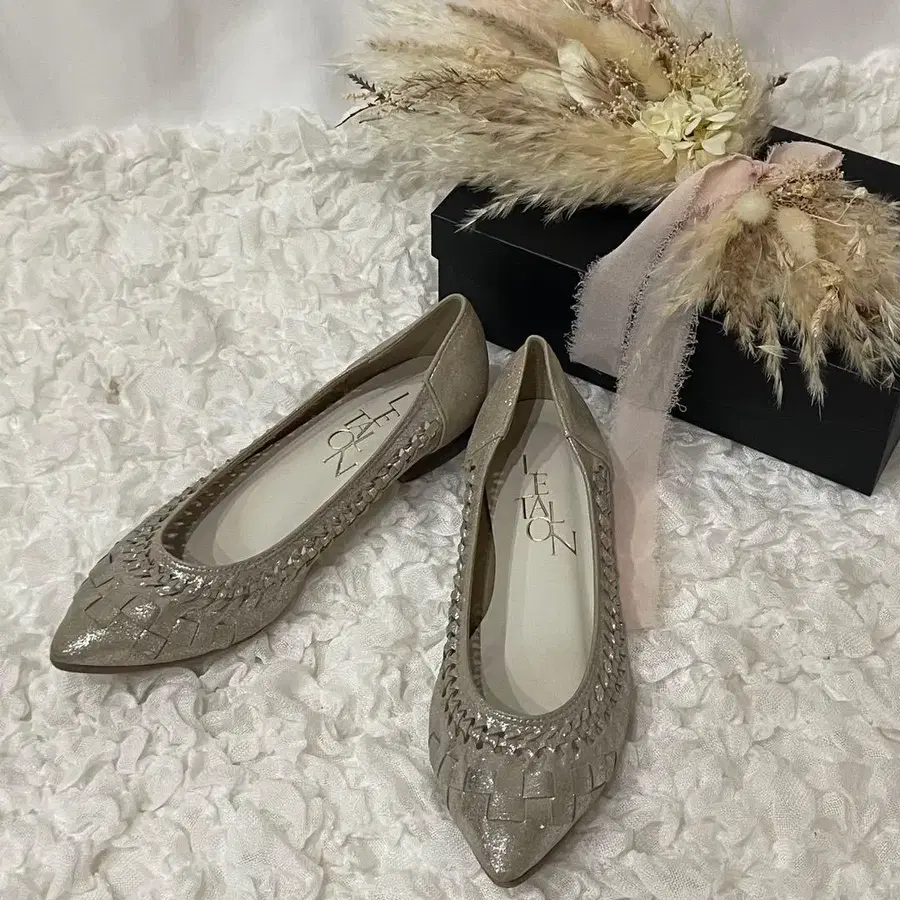뛰어난 착화감으로 매 시즌 큰 인기를 얻고 있는 플랫슈즈. 깔끔한 포인트 토 실루엣으로 어떤 스타일에도 여성스럽게 매치할 수 있는 아이템.