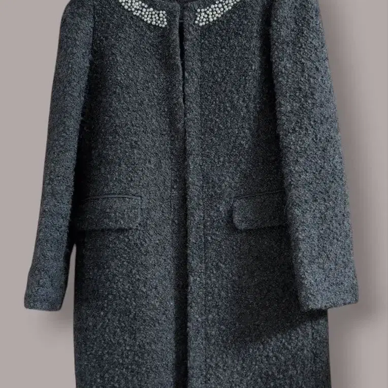 엠프리미어 노카라 비쥬 장식 부클레 코트 알파카 혼방