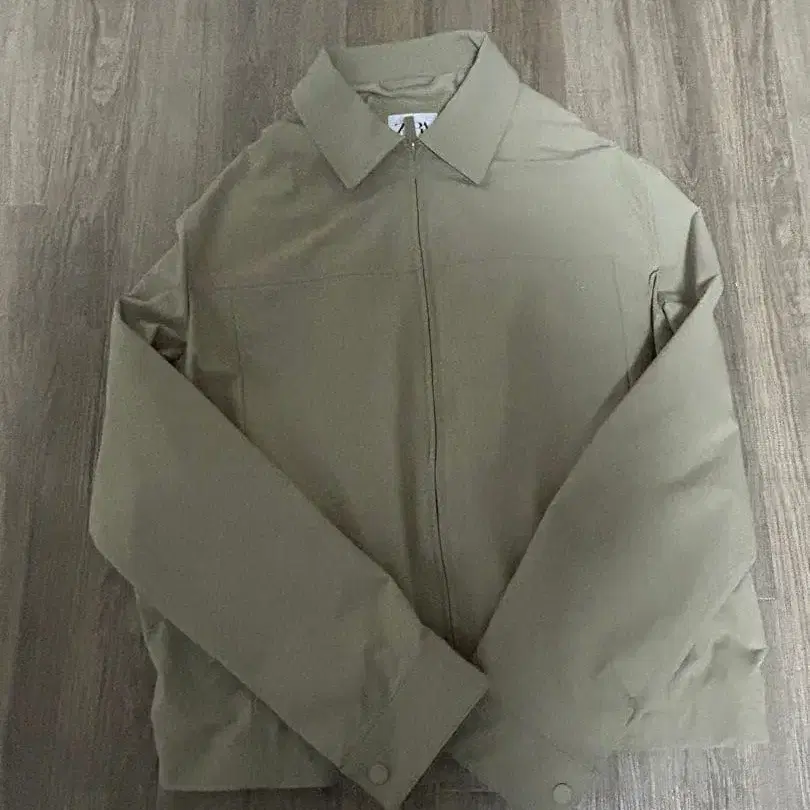 베이지색 지퍼 자켓, 심플하고 스타일리시한 디자인.