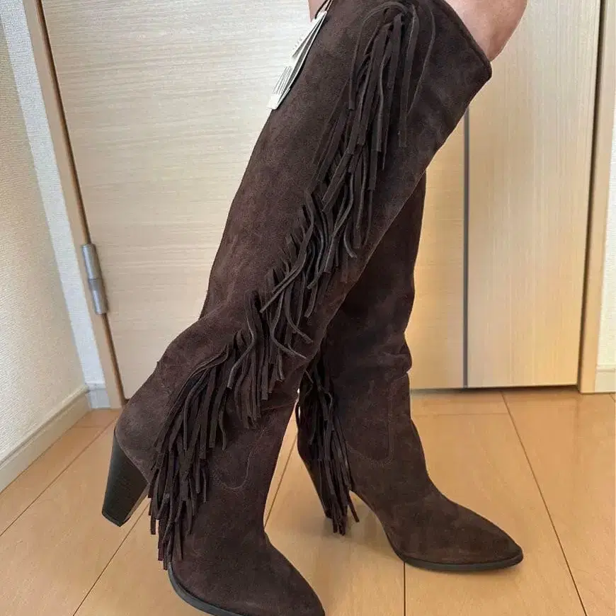 ZARA 프린지 롱 부츠 천연 가죽 23.5cm ( 36 ) 새상품