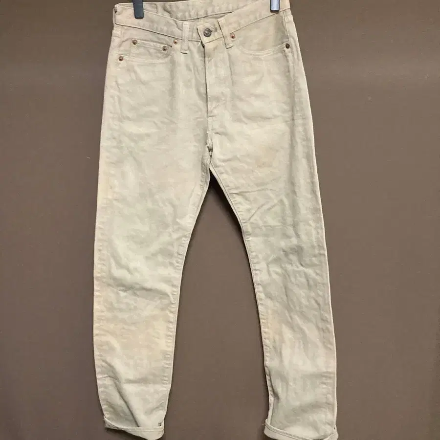 베이지 계열의 피케 팬츠 DENIME 제조.