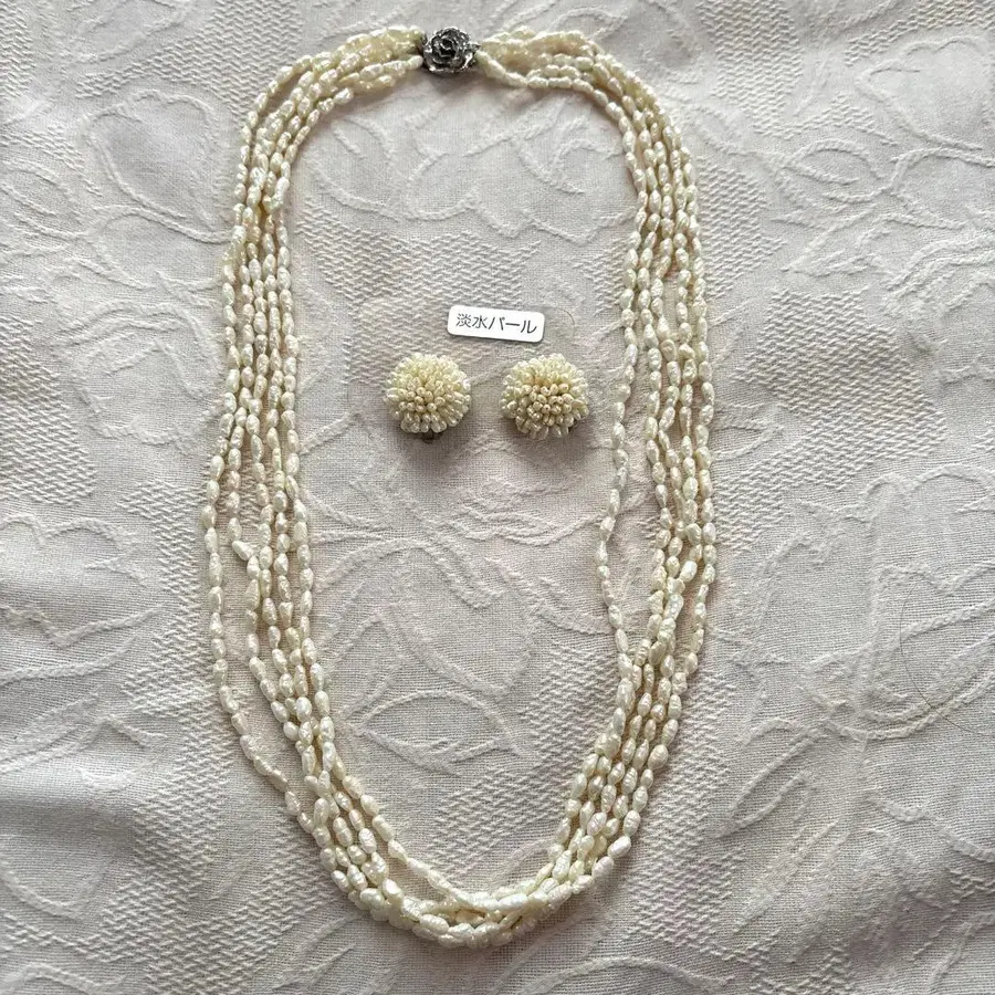 아이보리 다층식 펄 목걸이와 귀찌 세트. 담수 펄 5연 목걸이! 약 58cm - 타입: 목걸이 - 소재: 펄 - 디자인: 다층식 5연 #5연목걸이 #펄 #담수펄 #목걸이세트 방문해 주셔서 감사합니다.