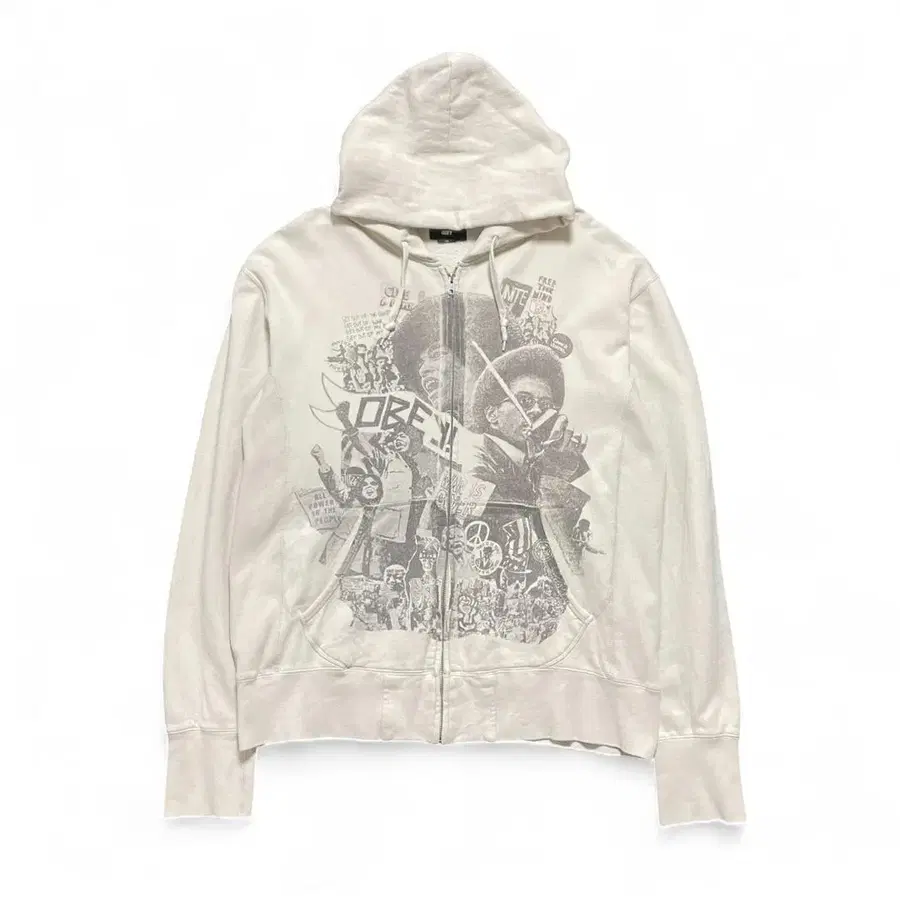 USA 구제 의류 OBEY 오베이 집업 맨투맨 후드티 프린트 베이지 남성용 XL 오버 사이즈 BE0873