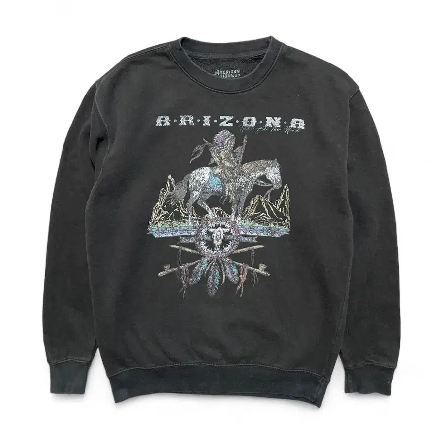 USA 구제 의류 아메리칸 하이웨이 크루넥 맨투맨 트레이닝복 네이티브 인디언 프린트 블랙 남성용 M BD2933