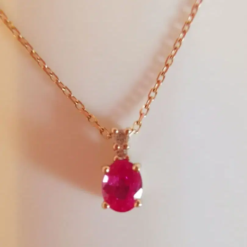 18K 오벌컷 루비가 특징인 골드 목걸이.
