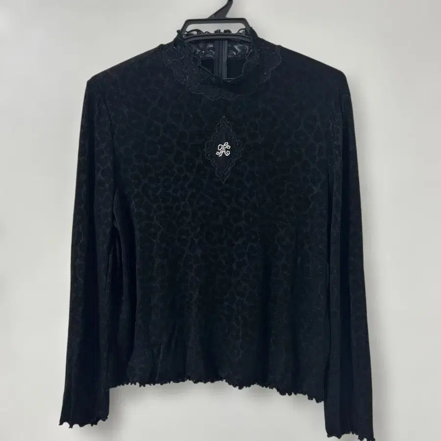 이탈리아 11호 레오파드 무늬 하이넥 긴팔 상의, 비쥬 장식으로 엘레강트한 인상.