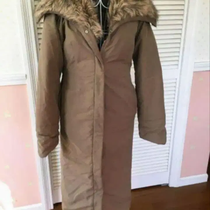 • 퍼 카라 부착 더블 브레스트 롱 코트