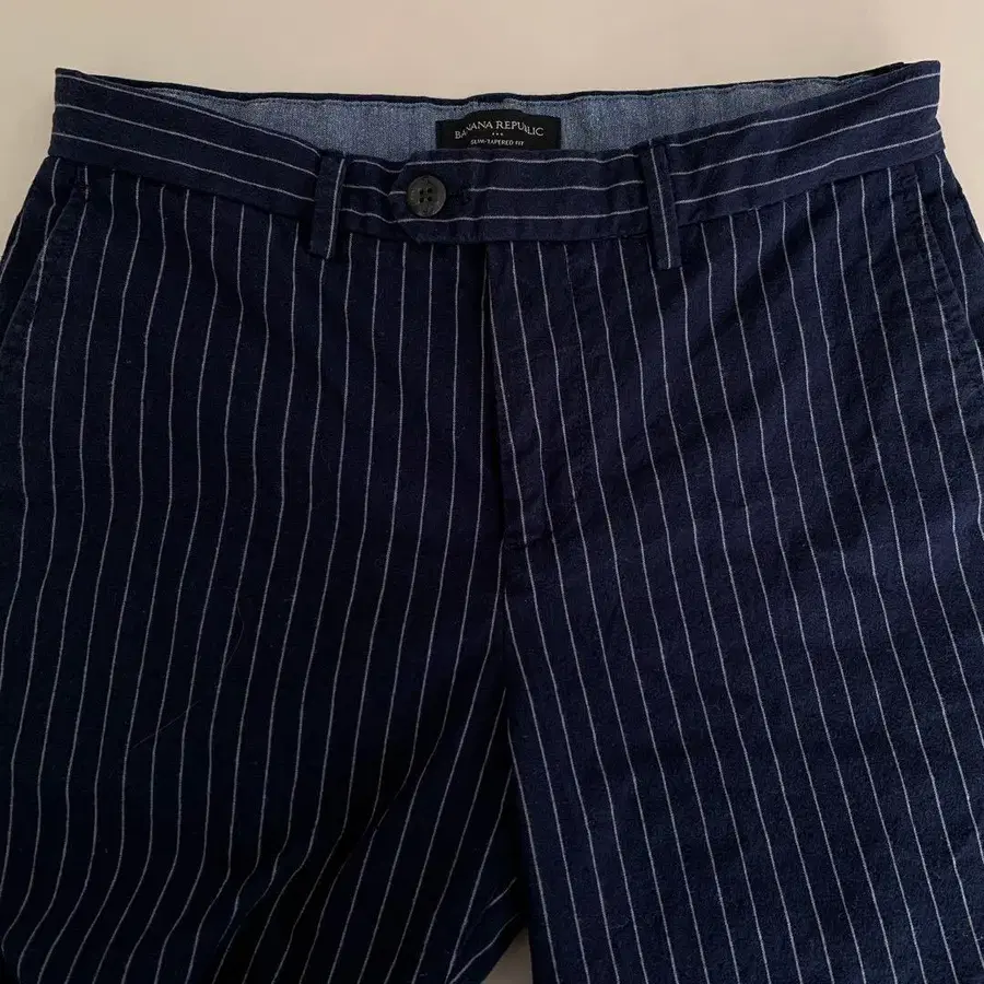 네이비 스트라이프 디자인, 슬림 테이퍼드 핏의 29X30 사이즈 슬랙스. - 브랜드: BANANA REPUBLIC - 스타일: 슬림 테이퍼드 핏 - 사이즈: 29X30 - 색상: 네이비 - 디자인: 스트라이프 방문해 주셔서 감사합니다.