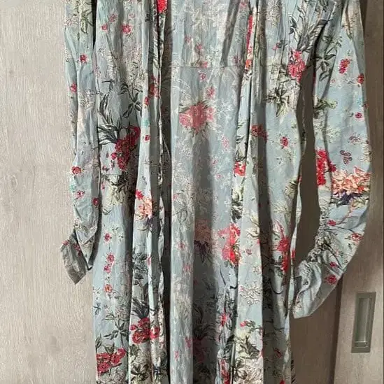 방문해 주셔서 감사합니다. 인도에서 구매했습니다. 1번 착용했습니다. 소매에 밴딩이 있어 길이를 조정할 수 있습니다. 프론트를 끈으로 묶어 여미는 디자인입니다. 원피스로도 가디건으로도 사용할 수 있어 아주 귀엽습니다. - 브랜드: the shop india - 소재: 코튼 100% - 색상: 스카이블루 - 디자인: 꽃무늬 - 소매 길이: 긴팔 - 비고: 포켓 있음 ◆ 사이즈 M 사이즈 어깨 너비 48cm 소매 길이 63cm 총장 116cm 착용컷은 사양합니다. 개인 측정으로 약간의 오차가 발생할 수 있습니다. 양해 부탁드립니다. 자택 보관이므로 이해하시는 분만 부탁드립니다. #원피스 #코튼 #인도 #긴팔