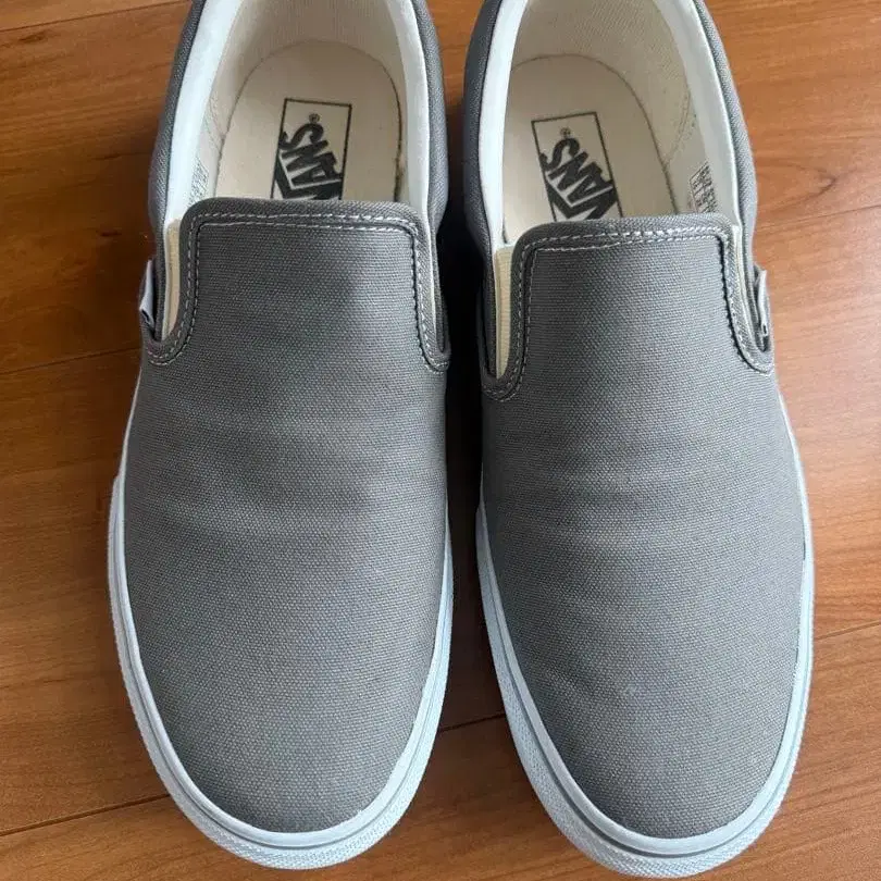 그레이 캔버스 소재의 VANS 슬립온.