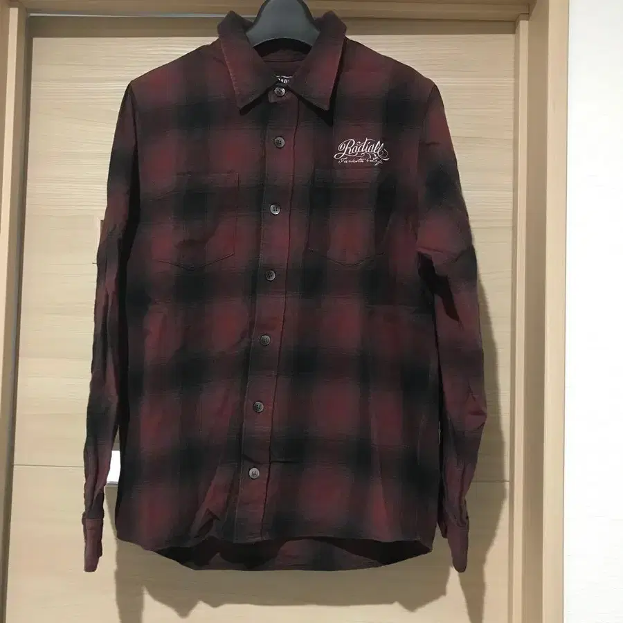 RADIALL 옴브레 체크 자수 입고 긴팔 셔츠.