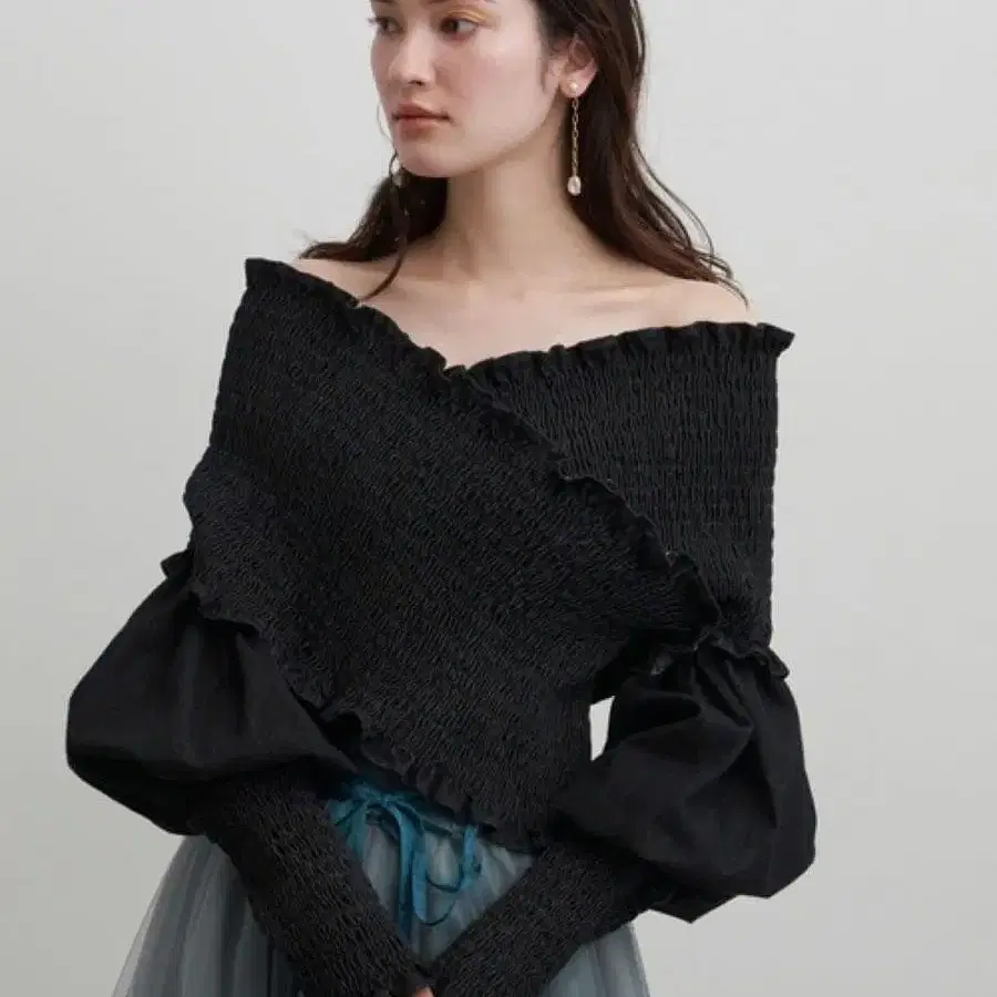▽ 디자인 포인트인기 있는 셔링 상의를 데님 원단으로 업데이트했습니다. 화이트, 블랙의 캐주얼부터 달콤한 스타일까지 폭넓은 스타일링에 맞추기 쉬운 컬러 전개로. 카슈쿨처럼 겹쳐진 가슴 부분은 적당히 파여 있어 깔끔한 넥라인을 만듭니다. 컴팩트한 형태로 볼륨감 있는 하의와도 궁합이 좋습니다. ▽ 디테일적당한 고정감이 있는 섬세한 셔링 사양으로 어깨 위치는 조절이 가능하며, 오프숄더로도 좋습니다. 신축성이 있어 몸의 라인을 예쁘게 보여주면서도 압박감이 없어 편안한 착용감입니다. 볼륨감 있는 퍼프 슬리브가 팔뚝을 커버해 줍니다. 저스트 기장, 컴팩트한 실루엣이라 볼륨감 있는 샤샤 스커트나 하이웨스트 하의와 균형이 좋습니다.