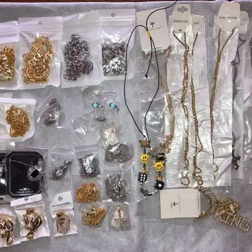 다양한 디자인의 목걸이 등의 묶음 판매입니다. 미사용품이지만, 어디까지나 중고품임을 이해하시고 구매 부탁드립니다. 소재 등은 알 수 없습니다. 반품 불가로 부탁드립니다.