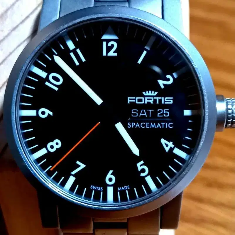 FORTIS フォルティス 새상품급 스페이스매틱 데이데이트 해킹 기능 크라운 나사식 200m 623.22.158.1 케이스 폭 약 4cm (크라운 제외) 팔 둘레 약 17.5cm (개인 측정) (여분 구멍 1개 있음) 미세한 흠집 등은 사진으로 확인해 주세요. 문제없이 작동 #앤티크 #빈티지