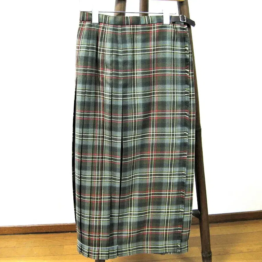 [ VESTIDO 플리츠 스커트 울 체크 무늬 올리브 계열 ]