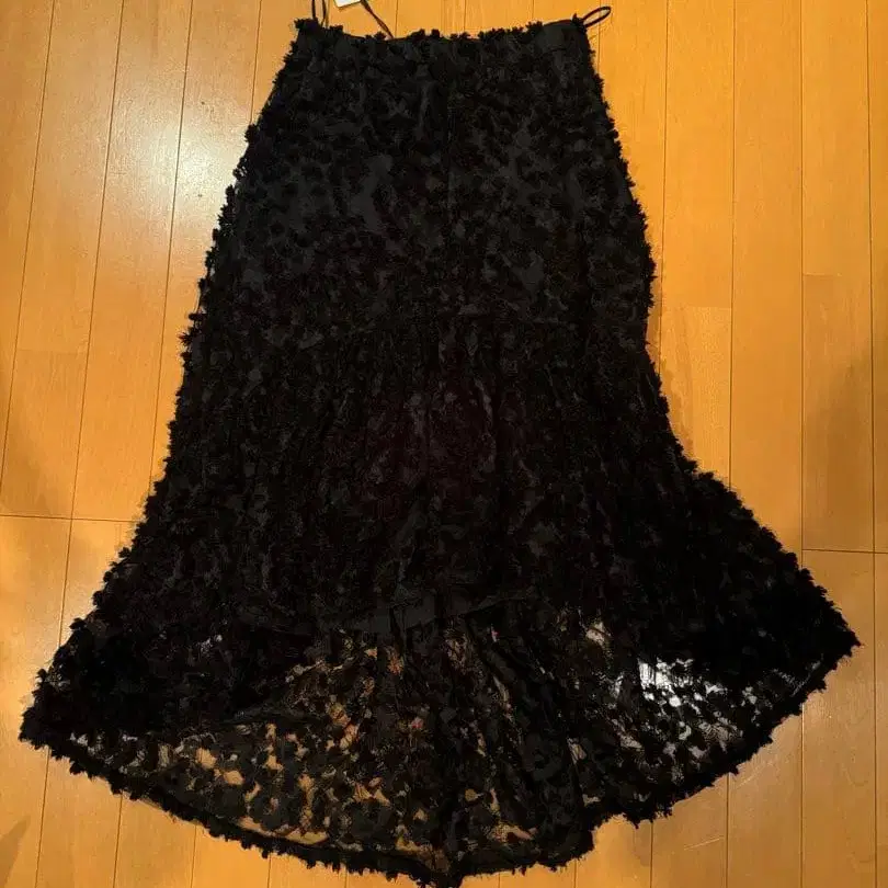 RUFFLE 블랙 플레어 롱 스커트 레이스풍