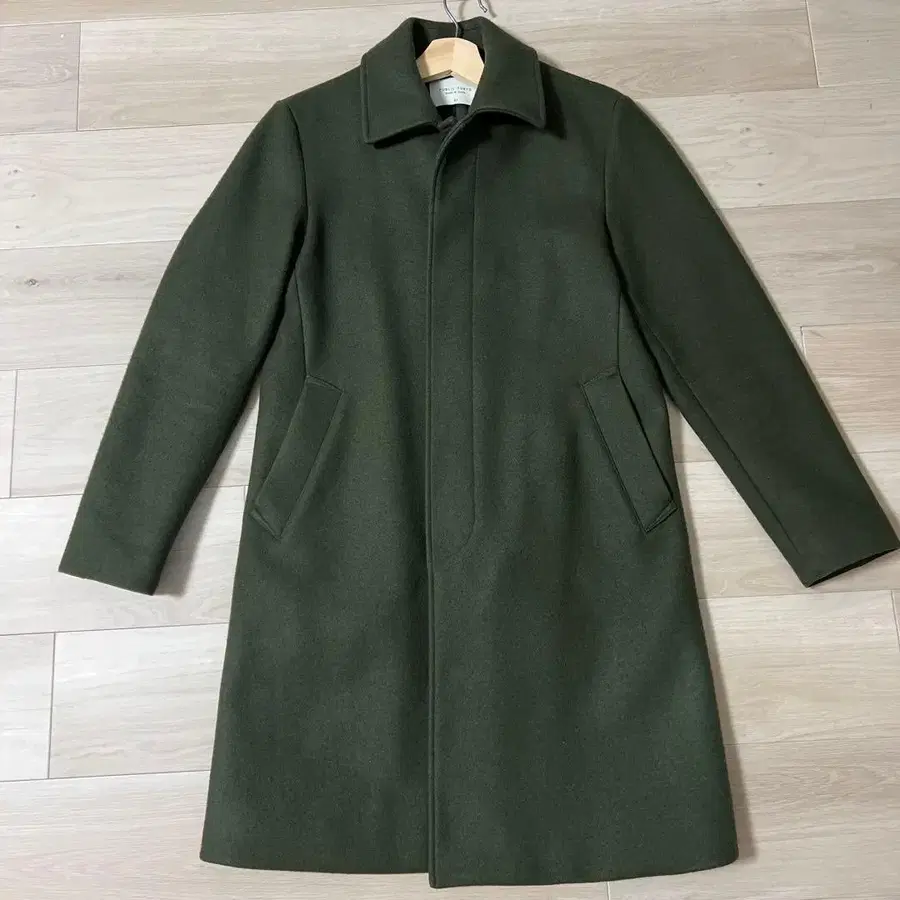 심플한 디자인의 올리브 그린 울 혼방 체스터 코트.