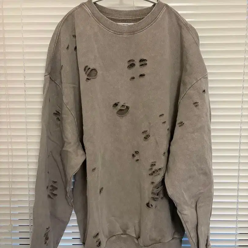 데미지 가공 오버 사이즈 그레이 스웨터