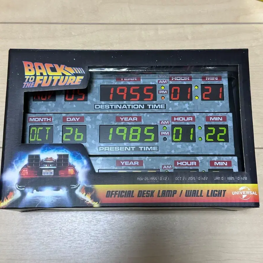델로리안 디자인의 다색 LED 데스크 램프, 시간 표시 기능 포함. 타임 서킷