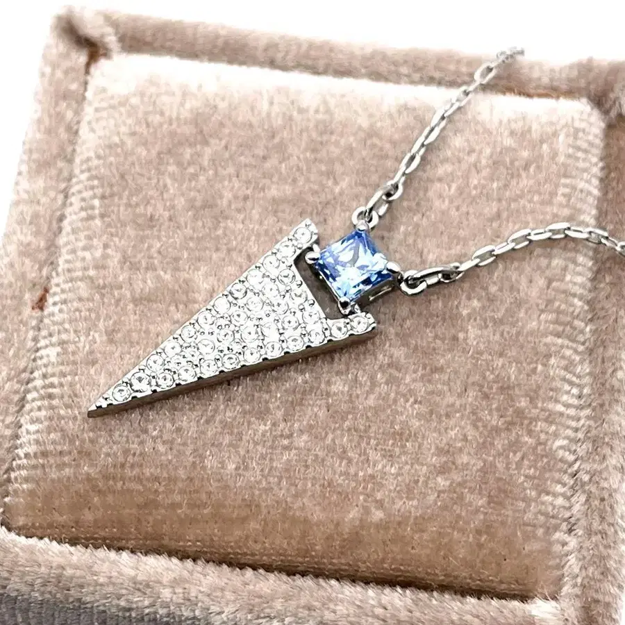 역삼각형의 실버 플레이트에 크리스탈이 섬세하게 빛나며, 탑에 배치된 작은 블루 크리스탈이 기품 있는 악센트를 더합니다.