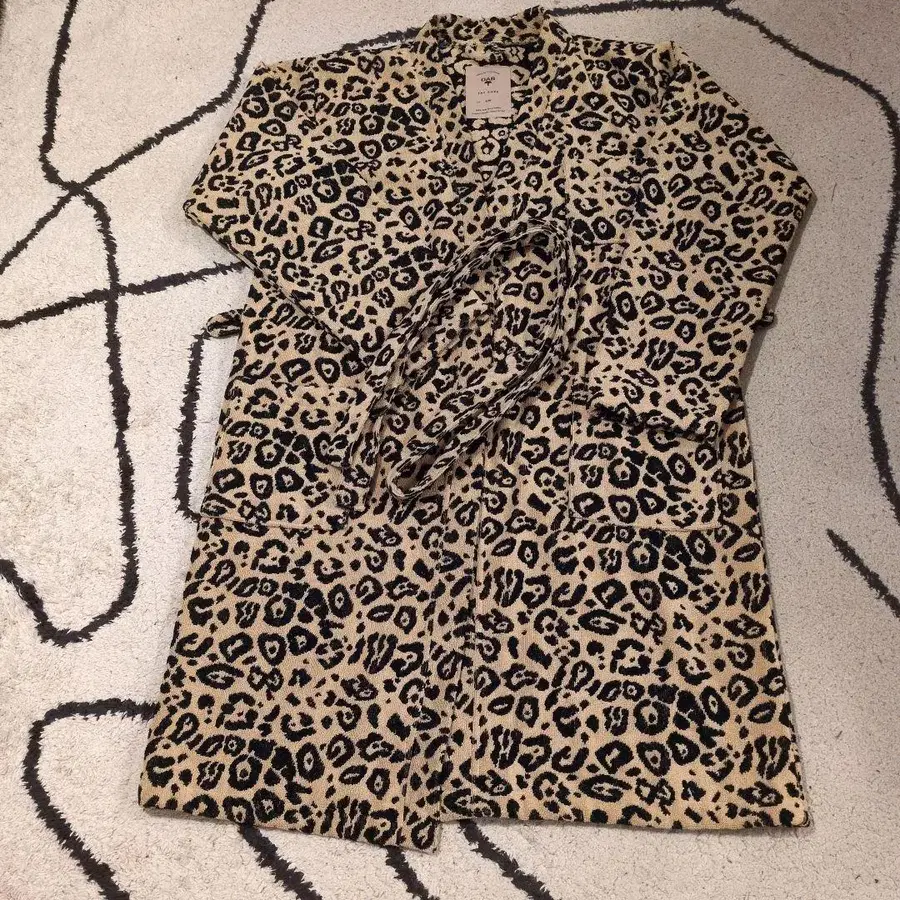 자동 번역되었어요. 원문보기레오파드 무늬 디자인의 소프트 테리 코튼 로브, S/M 사이즈.