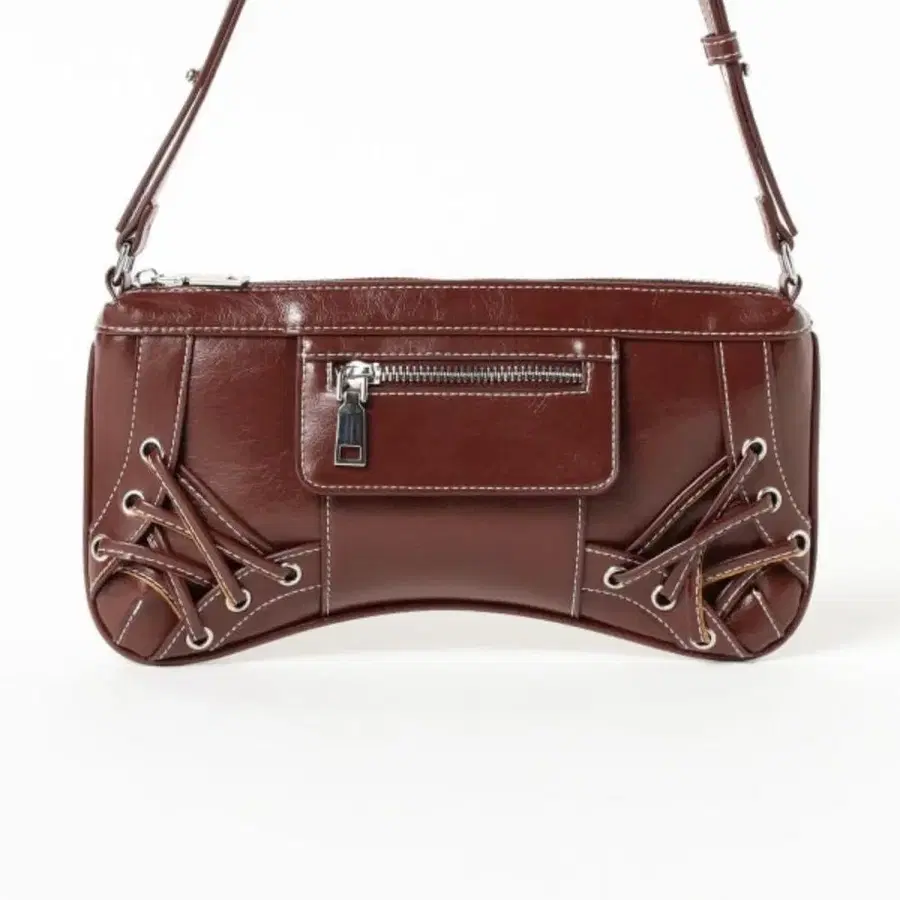 레이스업 디자인이 특징인 브라운 핸드백. - 브랜드: Ray BEAMS - 색상: 브라운 - 디자인: 레이스업 디자인 - 사이즈: 소형 - 지퍼: 프론트 지퍼 포함 방문해 주셔서 감사합니다.