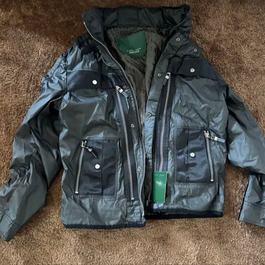 다크 그레이 색상의 ZARA MAN 밀리터리 자켓, 프론트 포켓과 지퍼 개폐. 택 포함. - 브랜드: ZARA MAN - 색상: 다크 그레이 - 스타일: 밀리터리 자켓 - 사이즈: M - 특징: 프론트 포켓 부착, 지퍼 개폐 - 소재: 나일론 방문해 주셔서 감사합니다.