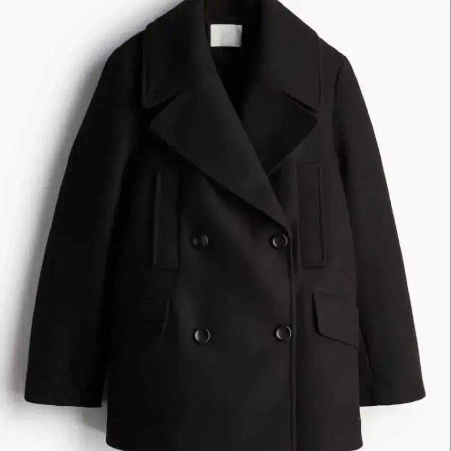 블랙 울 피 코트 더블 버튼 체스터 코트 짧은 기장