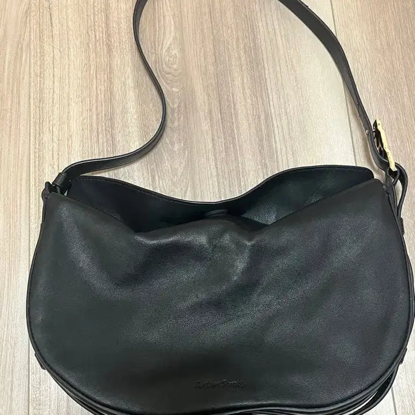 심플하고 스타일리시한 블랙 가죽 숄더백.