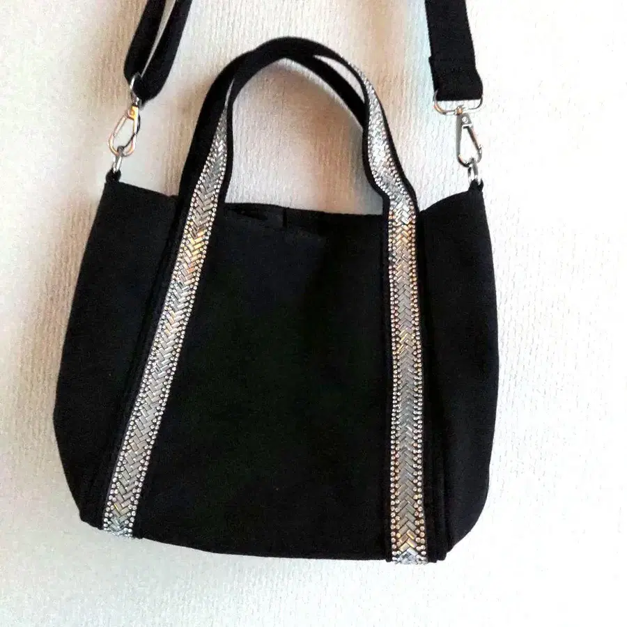 [새상품] 큐빅 반짝이는 캔버스 미니 토트 블랙 숄더백 2way