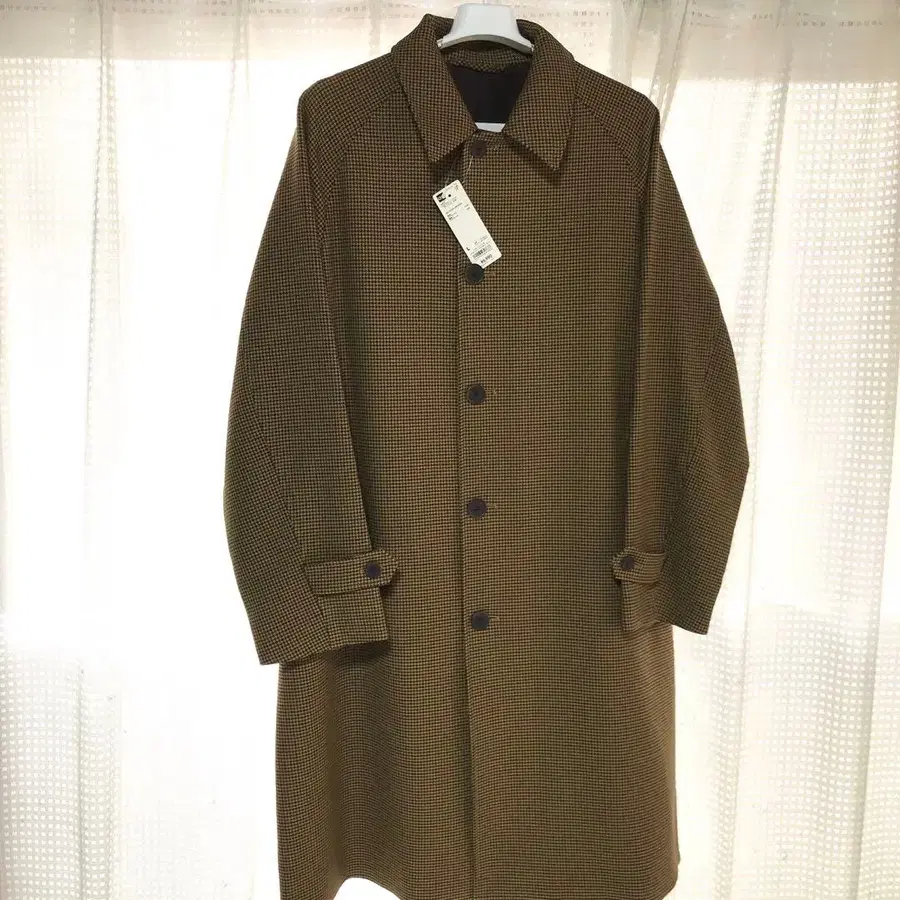 새상품 GU 남성용 롱 코트 브라운 계열 체크