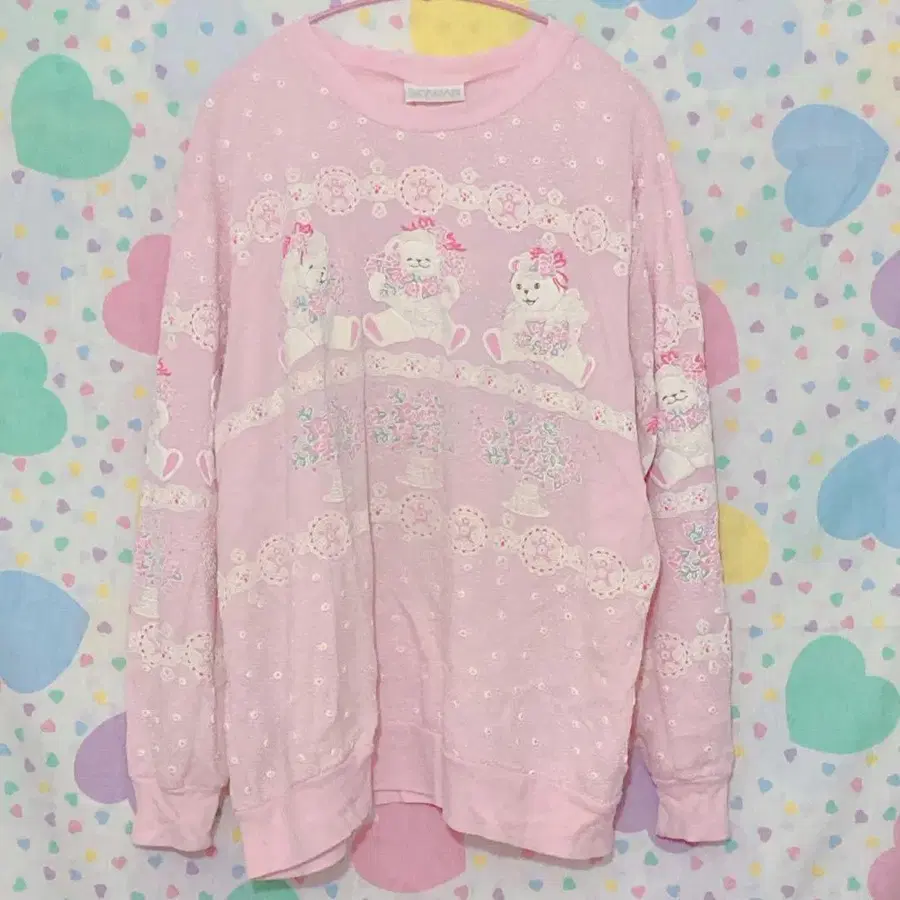 곰 테디베어 발포 프린트 퍼프 프린트 팬시 스웨터 트레이닝복 애니멀 아메카지 파스텔 페어리 걸리시 몽환룩 프린세스 팬시 아라모드 yakusoku 구니후니 키이치고 코엔지 시모키타자와 하라주쿠 USA Y2K kidcore kawaii used vintage