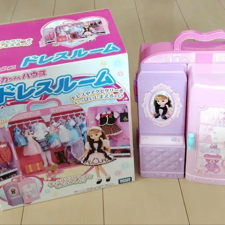 자동 번역되었어요. 원문보기핑크색 보관 케이스에 의상이나 액세서리를 수납할 수 있는 리카짱의 드레스룸.