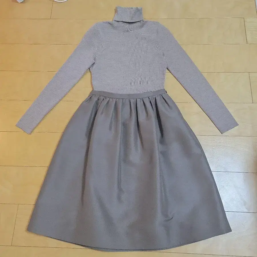 새상품급 mina perhonen 반팔 원피스 실크 플리츠 36 그레이