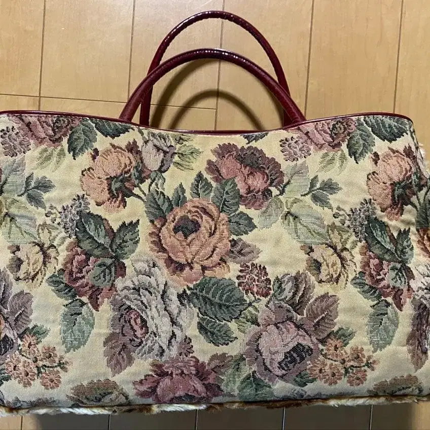 꽃무늬 디자인의 빅 토트백, 안쪽은 도트 무늬. 외부와 바닥에 퍼가 달려 있습니다. - 브랜드: kakatoo - 디자인: 꽃무늬 - 소재: 원단과 합성 피혁 - 안쪽 디자인: 도트 무늬 - 핸들 색상: 와인 레드 - 사이즈: 빅 방문해 주셔서 감사합니다.