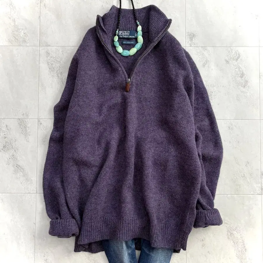 폴로 랄프로렌 하프 지퍼 램스울 100% 니트 퍼플