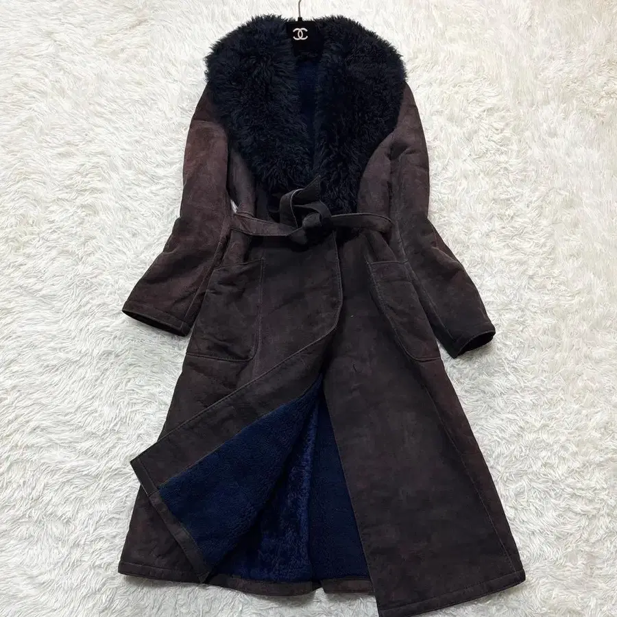 표면은 스웨이드 느낌이며, 안쪽은 고급스럽게 보아가 깔려 있고, 목 부분의 큰 퍼가 존재감 넘치는 1벌입니다.