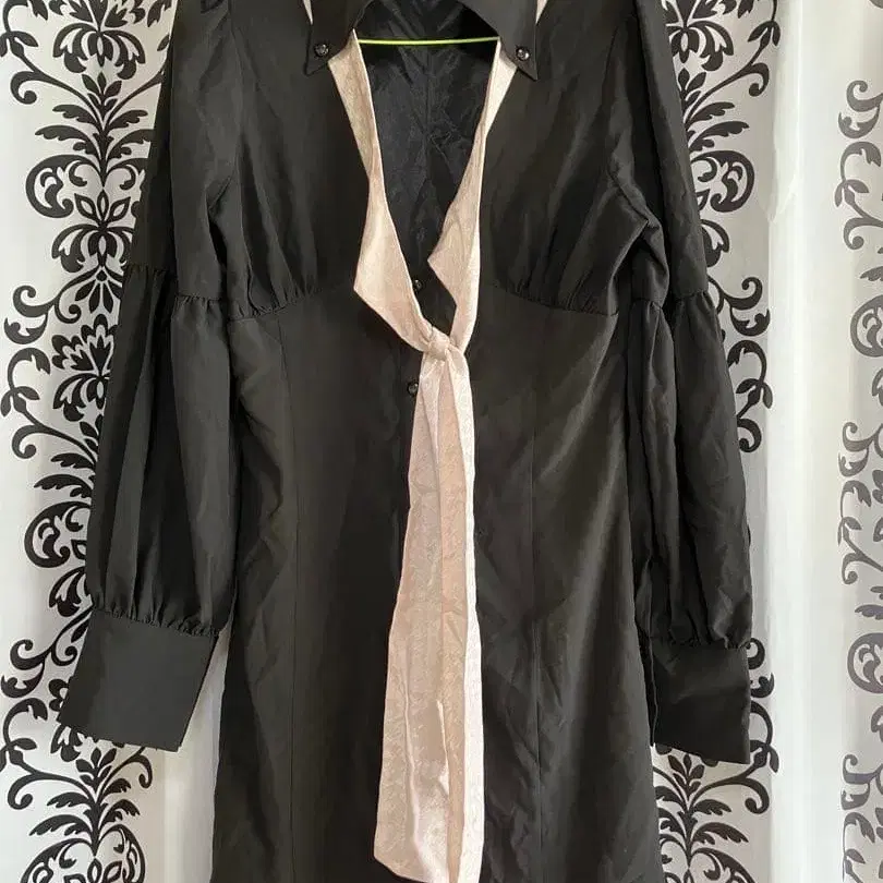 yori 요리 라운드 컬러 드레스 블라우스 블랙 스트레치