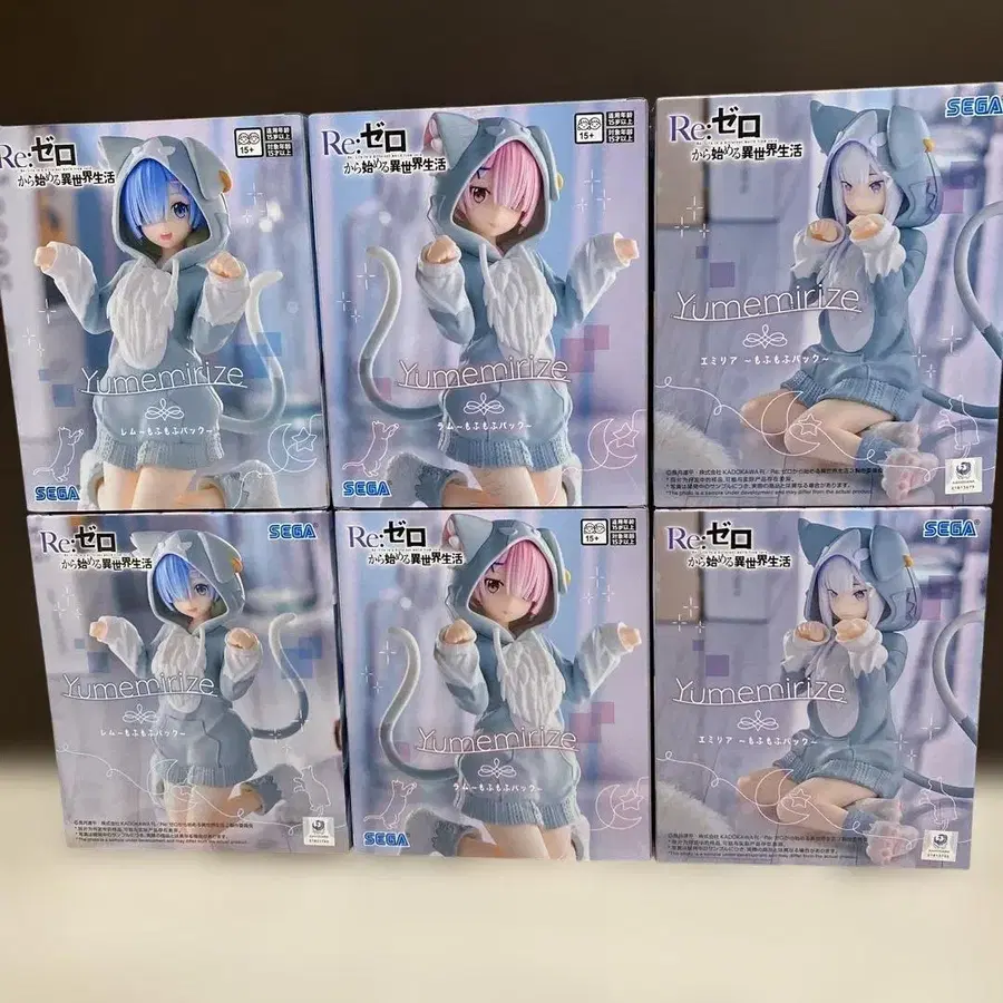 Re: 제로의 Yumenirize 피규어 6개 세트, 렘과 라무의 전개를 포함. - 브랜드: Re: 제로 - 모델명: Yumenirize - 캐릭터: 렘 - 캐릭터: 라무 - 색상: 파랑, 핑크, 그레이 - 수량: 6개 세트 방문해 주셔서 감사합니다.