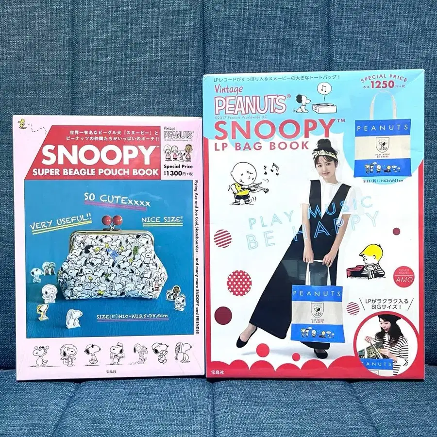 SNOOPY 파우치 BOOK과 LP BAG BOOK 세트입니다. 미개봉 새상품이지만, LP BAG 쪽은 상자가 약간 찌그러져 있습니다. 사이즈는 이미지에 있으니 확인해 주세요. 낱개 판매도 가능하지만 배송비를 고려하면 그다지 저렴하게 판매하기 어렵다는 점 양해 부탁드립니다. ※ 프로필을 읽어주세요.