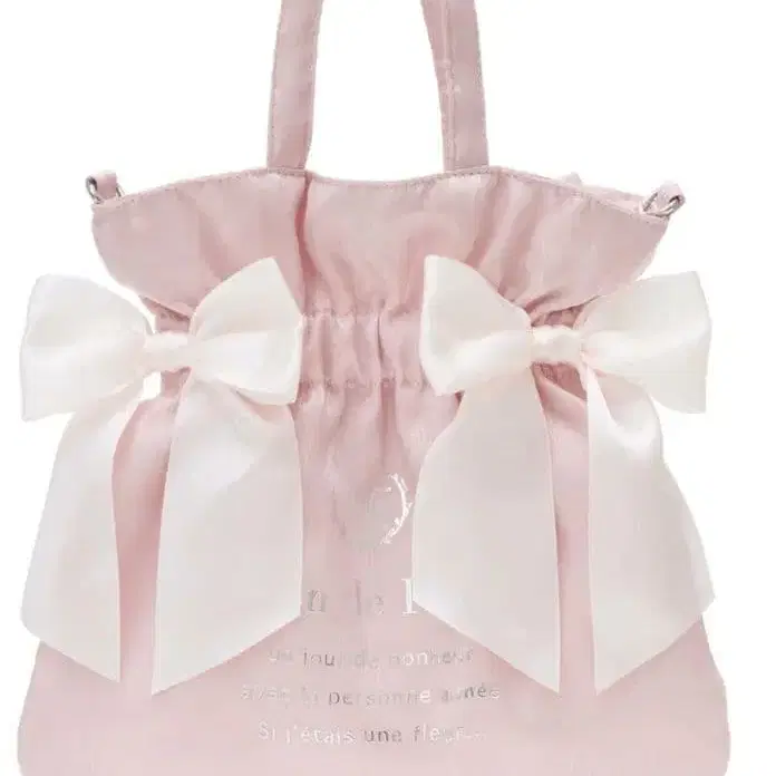 메종 드 플뢰르 샤이니 더블 리본 2Way 토트백 ( 핑크 ) [ 2WAY 사양 ] 반짝이는 원단에 더블 리본으로 페미닌한 악센트를 더한 특별한 느낌의 토트백입니다. 밴딩 개더로 입구를 조인 입체적인 복조리 형태에, 탈부착 가능한 숄더 스트랩이 달린 편리한 2WAY 디자인입니다. 실버 호일 프린트가 고급스러운 인상을 더합니다. 경량으로 사용하기 쉽고, 보기 이상의 수납력과 패션성을 겸비한 아이템입니다. ◎ [ 제품 치수 ] F: 바닥- 높이 28 너비 29 손잡이 27 스트랩 59~110 [ 소재 ] 본체 폴리에스테르 부속 부분 폴리에스테르 안감 원단 폴리에스테르 반짝이는 라이트 핑크가 매우 멋진 토트백입니다 ♡ 사용하실 분께 양도합니다. 색상 - 핑크 계열 얼룩, 찢김 등 - 없음
