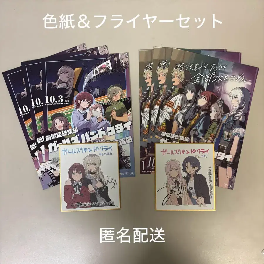 극장판 총집편 걸즈 밴드 클라이 전편 청춘광주곡, 후편 나아, 미래.의 내장객 특전 미니 색지 2장 (이세리 히나 & 카와라기 모모카, 히나 & 나나)과 플라이어 각 3장의 세트입니다.
