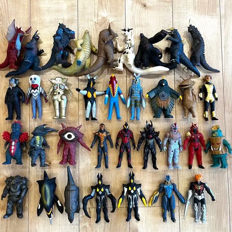 다양한 울트라맨 시리즈의 괴수 피규어 약 30개, 플라스틱 소재로 사이즈는 약 10cm - 20cm입니다.