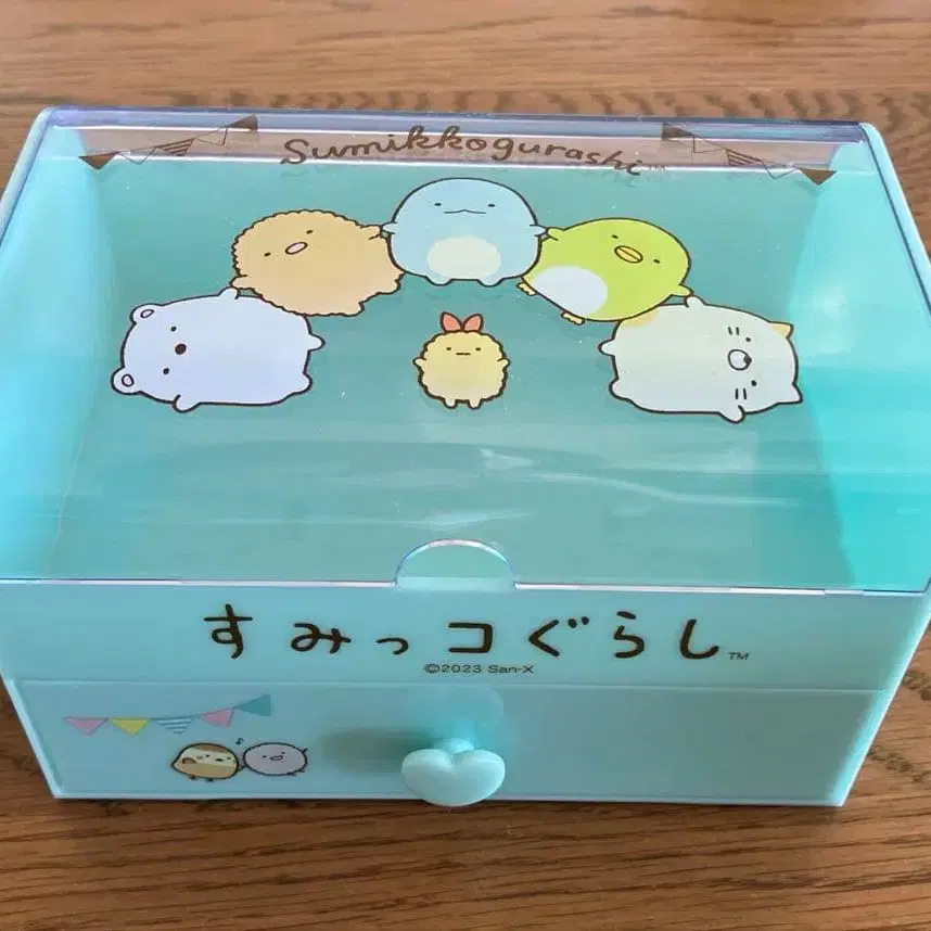 스미코구라시의 귀여운 수납 박스, 플라스틱 소재입니다. 세로 10cm x 가로 14.9cm x 높이 9.5cm 보관만 했기 때문에 사용감은 거의 없다고 생각합니다. - 브랜드: 스미코구라시 - 색상: 스카이블루 - 디자인: 캐릭터 수납 박스 - 소재: 플라스틱 - 사이즈: 소형 방문해 주셔서 감사합니다.