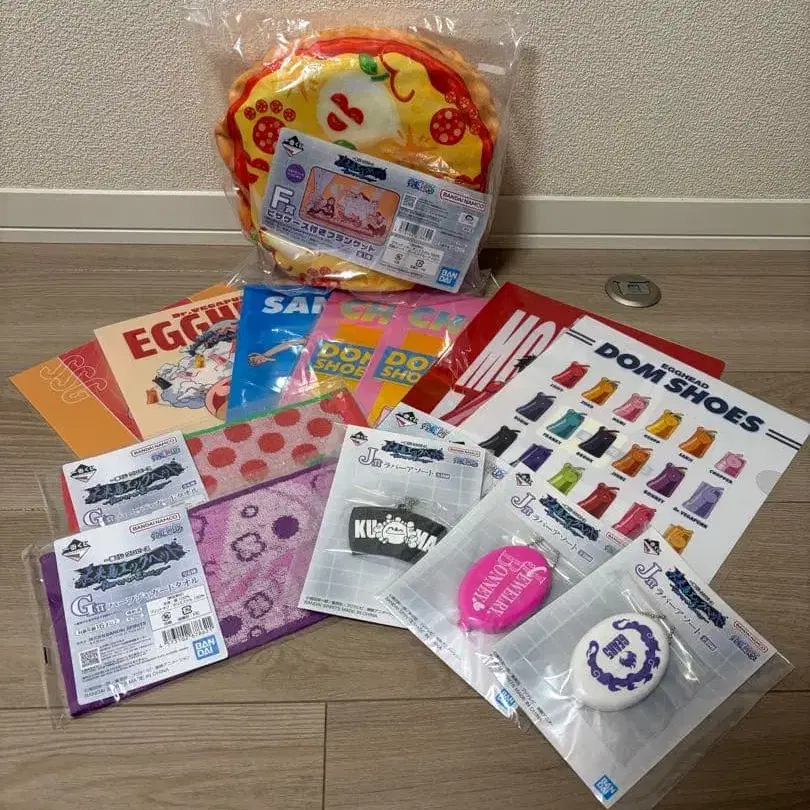 원피스 제일복권 미래섬 에그헤드의 경품입니다. 덤 여러 개 포함! 피자 모양의 쿠션과 다채로운 캐릭터 굿즈 세트입니다. - 상품명: 피자 쿠션 - 디자인: 피자 모양, 토핑 포함 - 부속품: 씰, 포스터, 기타 굿즈 - 테마: 캐릭터 굿즈 - 색상: 멀티 컬러 (빨간색, 옐로우 컬러, 그린 등) 방문해 주셔서 감사합니다.