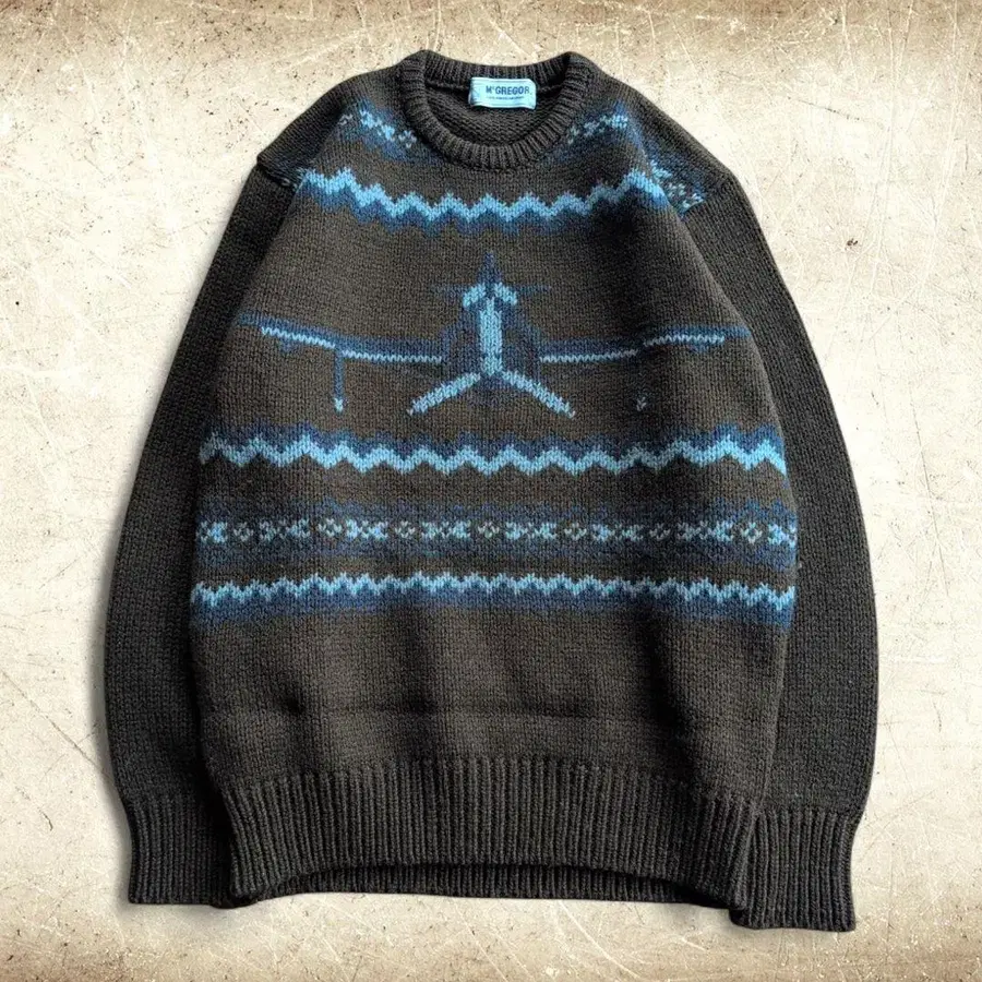 중심에 있는 비행기를 모티브로 한 디자인이 악센트가 되어 있으며, 크루넥으로 적당한 두께감의 니트입니다^^