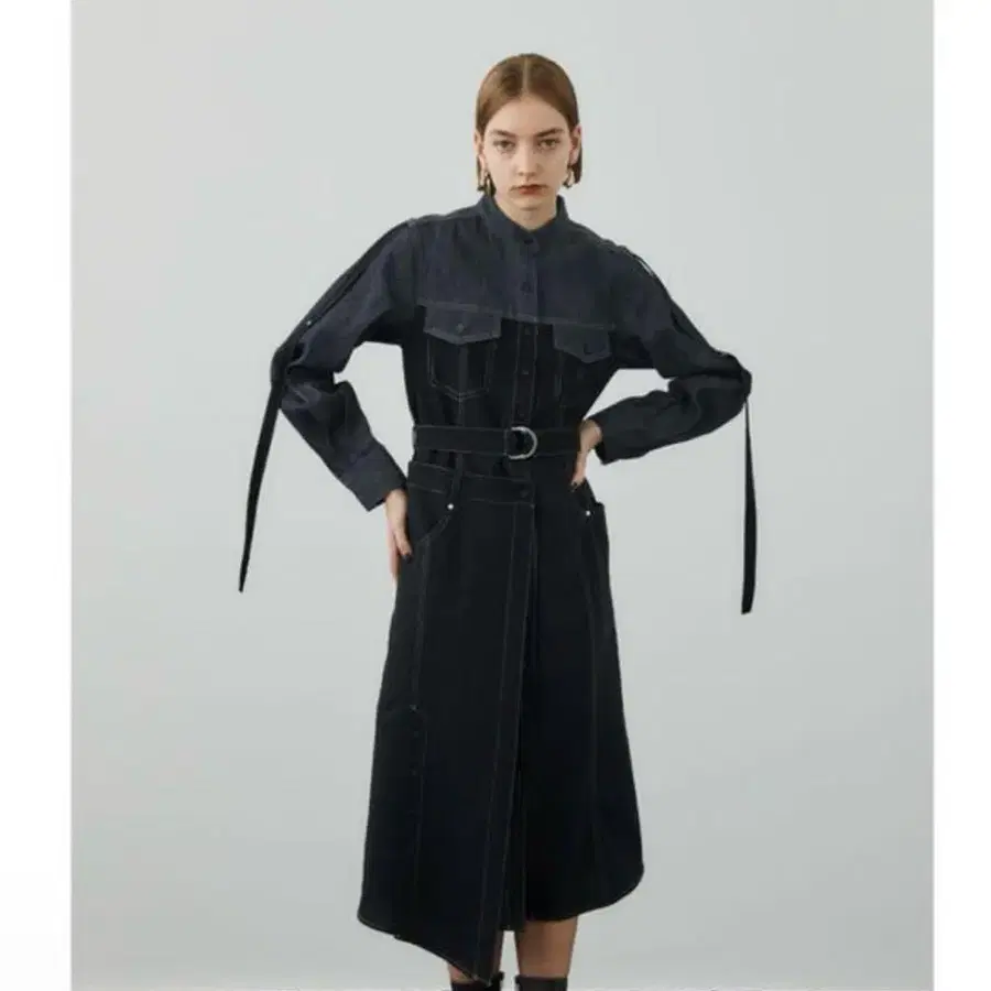 [ 새상품급 ] 유나이티드 도쿄 윈드 랩 콤비 원피스 데님 블랙