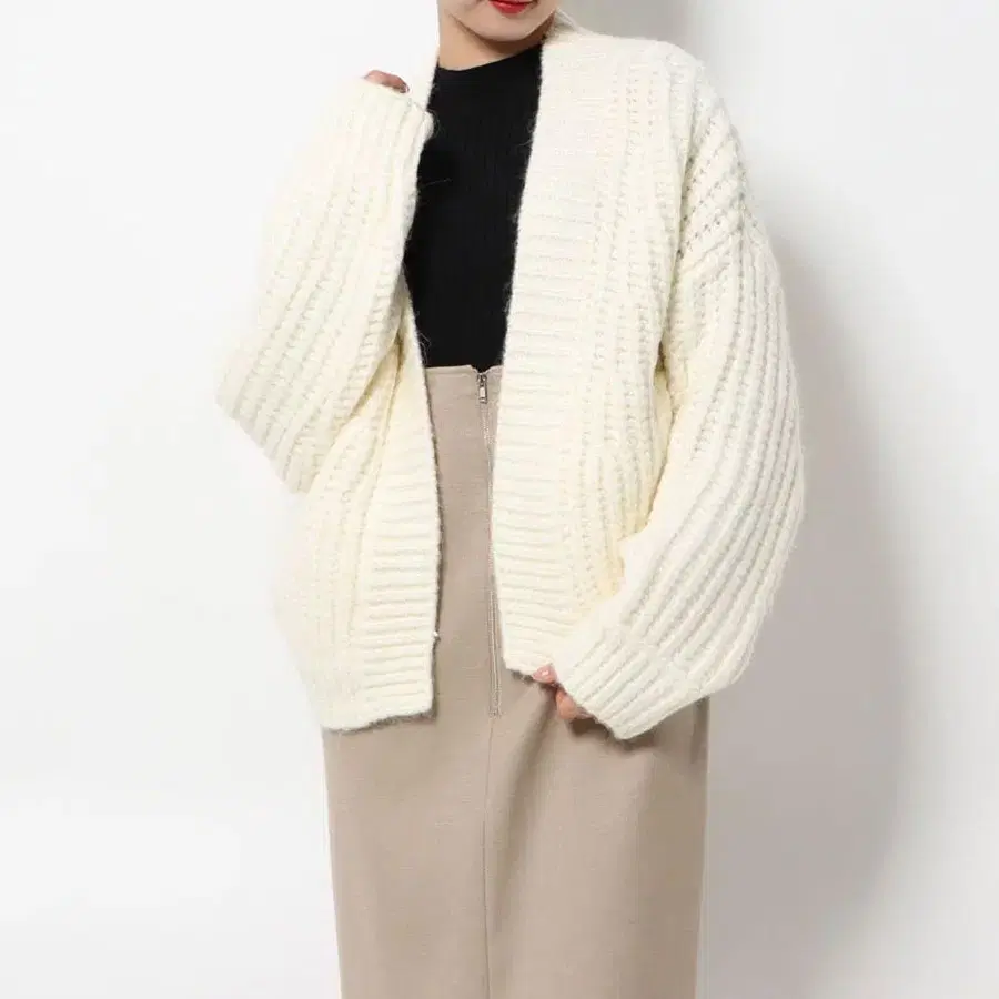 [ 미사용 ] SNIDEL 로우 게이지 니트 가디건 알파카 혼방 아이보리