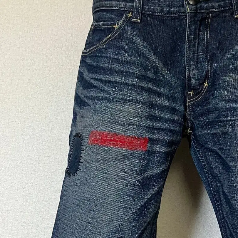 넘버나인 미야시타기 데미지 가공 패치워크 컷오프 하프 데님